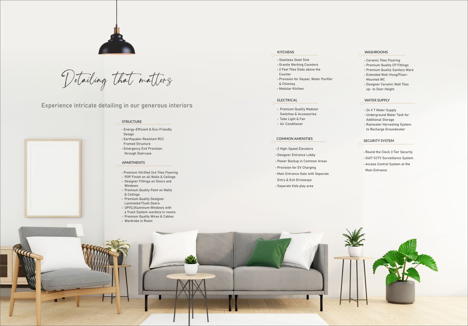 Furnished interiors in select units