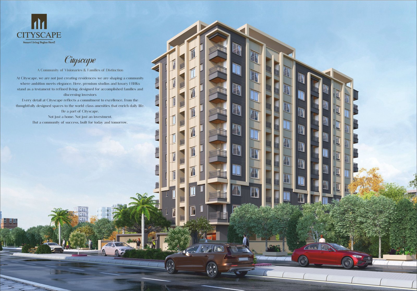 CityScape has been planned around the concept of studio apartments, which combine living, sleeping, and kitchen areas into a compact yet functional space. These units are designed primarily for single professionals, young couples, and short-term occupants working in the nearby corporate hub.